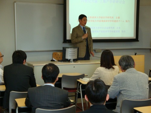 会上,魏农建教授作了有关上海商业流通发展现状和趋势的讲座,并回答了与会人员提出的10多个相关问题。这些问题反映了日本学术界和企业界对中国、对上海的产业结构、产业政策高度关注。会上,经贸学院的陈子雷副教授还就在沪日本中小企业发展问题与日方研究人员进行了开放式交流。期间,产经学科成员还和大阪经济大学的中国留学生进行了充分交流,对其所提出问题给予了耐心的回答。