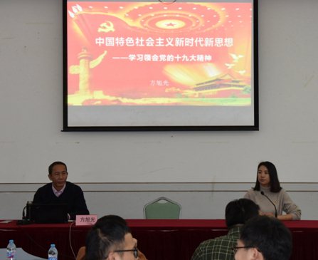 党的十九大胜利召开后,工商管理学院党委把学习宣传贯彻党的十九大精神作为当前首要政治任务,分层分类开展党的十九大精神学习活动。1215日,工商管理学院党委邀请校党的十九大精神宣讲团成员、马克思主义学院方旭光副教授为学院全体学生党员做题为《中国特色社会主义新时代新思想——学习十九大精神》的辅导报告,旨在帮助学生党员更加全面深入地学习领会党的十九大精神,不忘初心、志存高远,在实现中国梦的生动实践中放飞青春梦想。工商管理学院党委书记刘根春、副书记刘素贞、全体辅导员,全体学生党员与部分入党积极分子听取了讲座。讲座由施毅婷老师主持。