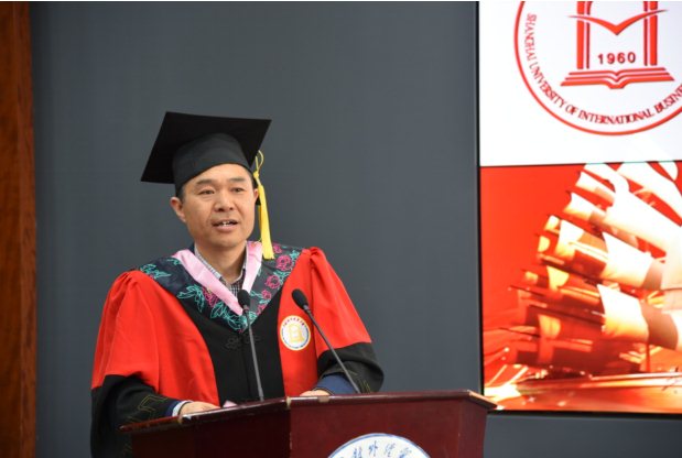 副院长阎海燕副教授代表全体导师为毕业生送上祝福,她以“携手相伴”、“收获成长”、“彼此牵挂”为题,回顾教学相长的历程,希望同学们运用系统思考的动态和全面的思维模式,具备长远眼光,提升自身格局。寄语毕业生继续保持强烈的社会责任感和使命感。祝福毕业生拥有多姿多彩的幸福生活。