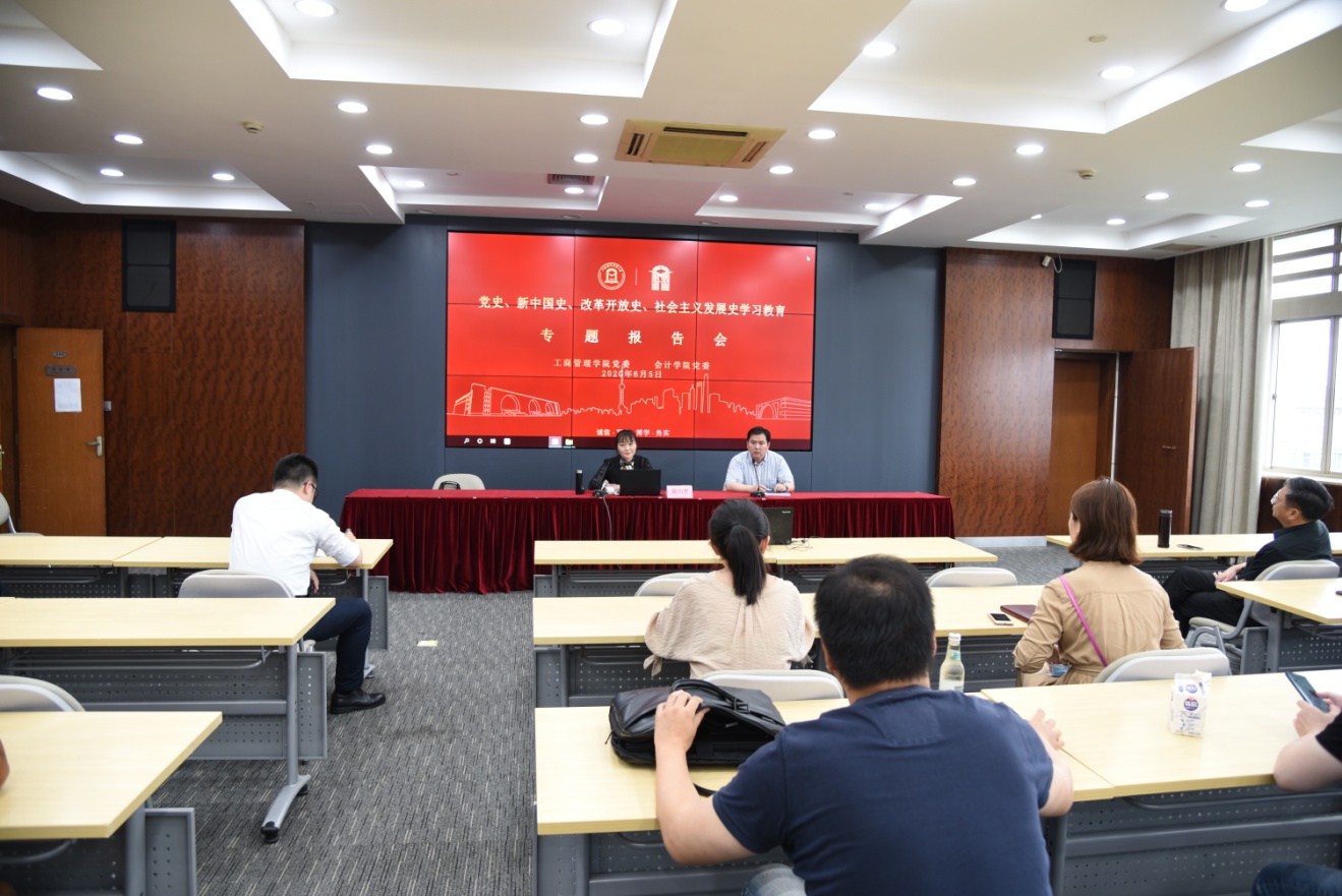 为深入推动全体党员、干部学好党史、新中国史、改革开放史、社会主义发展史(以下简称“四史”),工商管理学院党委和会计学院党委整合资源、联动学习、深入结对,将“四史”学习教育活动扎实推进,营造浓厚的学习氛围。