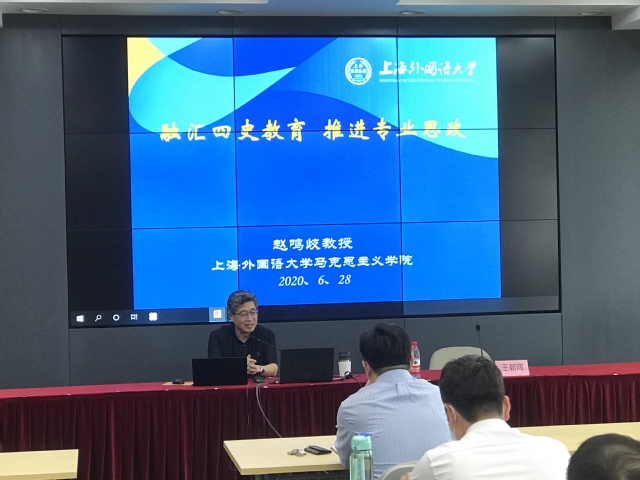 6月28日上午,工商管理学院党委邀请上海市“四史”专家宣讲团成员、上海外国语大学马克思主义学院院长赵鸣歧教授为全体教师作《融汇“四史”教育、推进课程思政》专题报告。