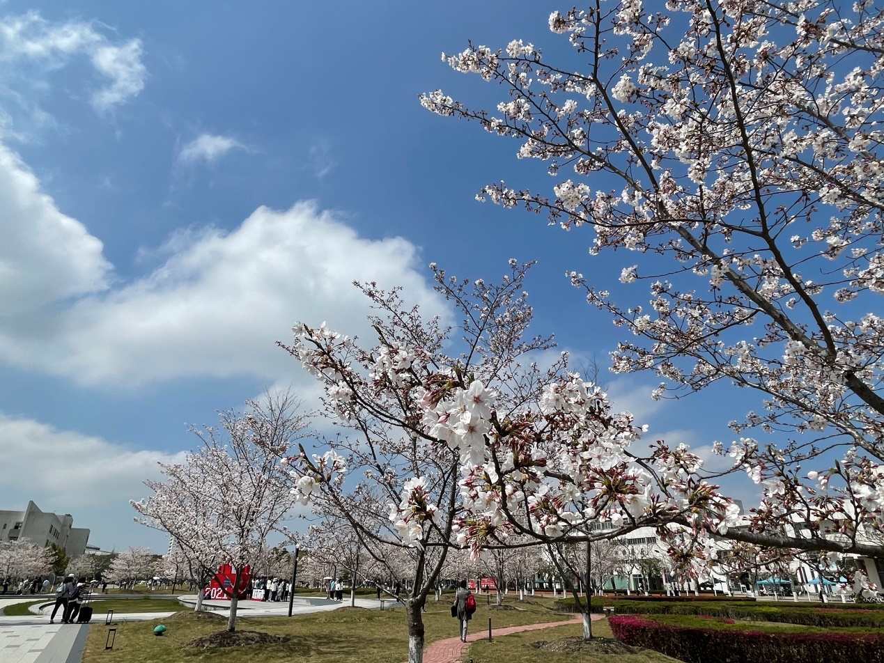潺潺流水与两岸的樱树交相辉映,成为全校师生回忆中最鲜艳的一笔。