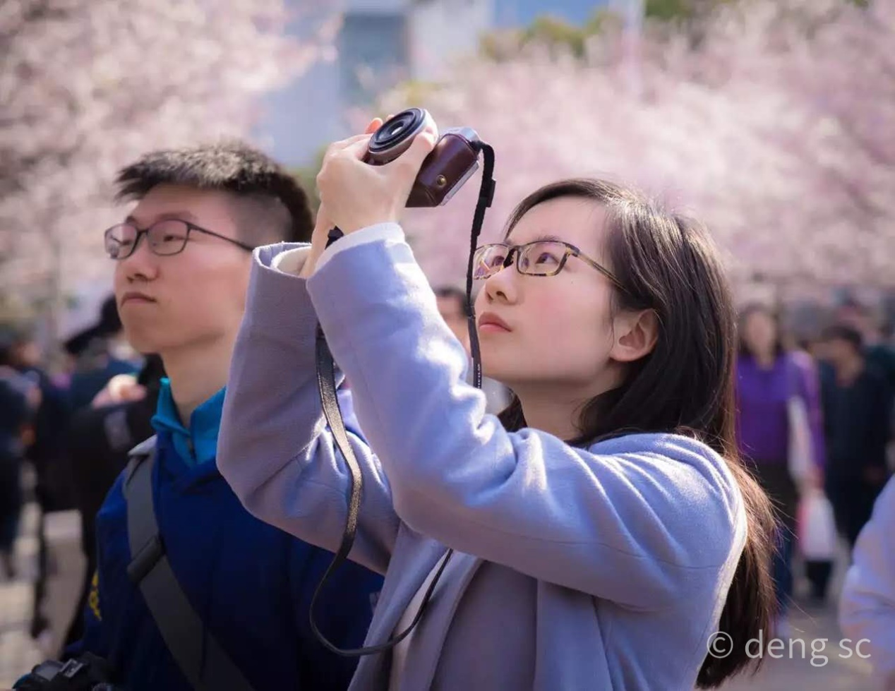 有人在樱花树下阅读或摄影,有人在座椅上享受阳光,有人在互相追逐嬉笑。时光从他们身边温柔的流过,留下美好的印记。