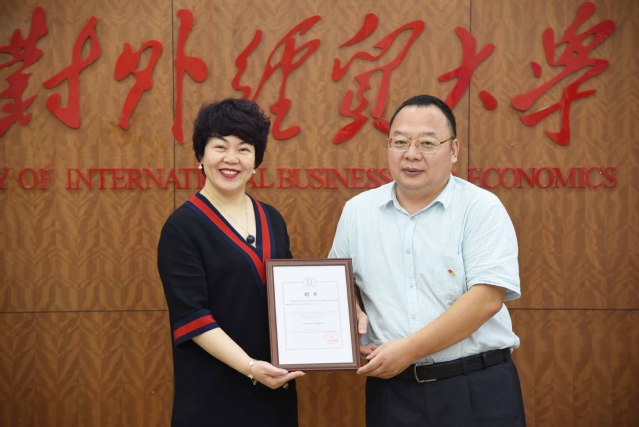 工商管理学院党委书记武增勇向来伊份创始人、集团总裁郁瑞芬女士颁发企业导师聘书