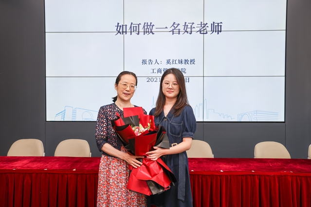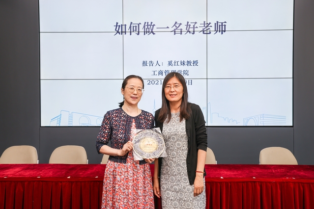 仪式上还播放了校友代表的视频祝福。随后,奚红妹老师深情回顾了对管院每一位成员的深情厚谊,并以“如何做一名好教师”为主题,与大家分享了教学这门艺术的心得。她说:“教学是一门考究的艺术,我们的一言一行,一举一动都在向学生传递着信息,学生接受了信息后能否作出积极反应,取决于教学的审美意境。我非常喜欢听京剧,名角唱腔令我着迷。要是我的教学能够像京剧一样,余音缭绕,唱腔跌宕起伏,气息绵延千里,那该多好啊!所以我琢磨每一节课的起承转合,力求张弛有度,大开大合。为什么要让教学上升到艺术高度?因为美令人着迷,因为美令人向往,因为美催人行动。学生被知识感染了,才会向往知识探究,激发学习热情。教学是座巍峨的高山,我仍在山脚下。在座的每位老师到我这个年纪定能登上山峰,我为你们喝彩。”