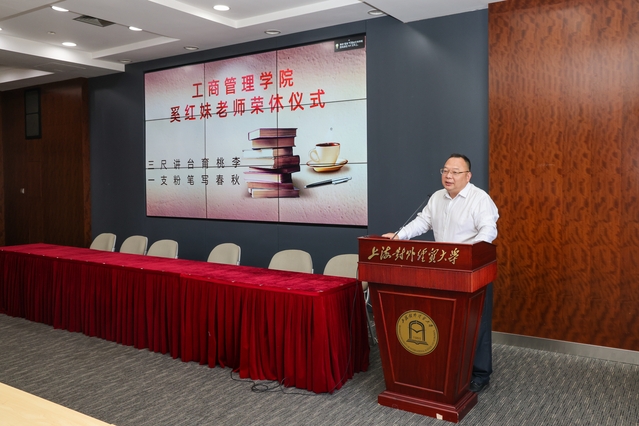 仪式伊始,播放了学院工会精心制作的回顾奚老师在校工作与生活的视频。随后姜秀珍院长代表学院全体师生向奚红妹教授致以崇高的敬意和衷心的感谢。姜院长概括回顾了奚老师这位地地道道的“贸大人”为学院事业做出的卓越贡献,希望奚老师今后继续关心与支持学院事业发展,继续提携与引领学院青年教师;希望学院青年教师积极向前辈学习,努力做必赢626net入口首页的大先生、做管理学领域的大学者!随后工商管理学院副院长、市场营销系主任谢佩洪、营销系教工党支部书记李莅、教师代表徐波、史楠等相继发言,回顾了与奚老师一起工作的经历。仪式过程中掌声阵阵,情意浓浓。