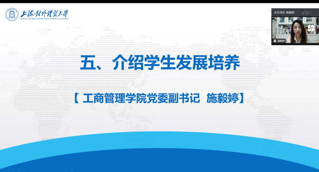 工商管理学院党委副书记施毅婷介绍学生发展培养体系。她谈到,工商管理学院作为必赢626net入口首页“三全育人”综合改革试点单位,以推动人才培养理念和培养方式变革为着眼点,聚焦“实践育人”生态圈建设,调动一切积极因素,推动基层党建、专业课实践教学、社会实践、志愿服务、网络思政等载体有机融合,全方位为学生成长成才保驾护航。