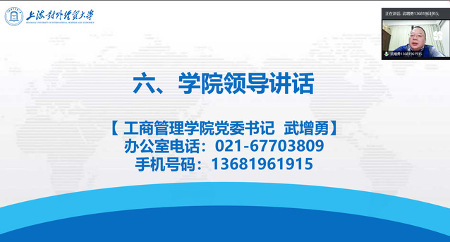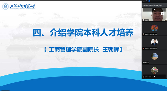 为了贯彻新时代党的教育方针,落实立德树人根本任务,加强学校教育与家庭教育的高效衔接,强化家校合作,促进家校育人机制的规范化和科学化,做好新生适应性教育,10月18日晚7点,工商管理学院2021级新生家长见面会在线上顺利召开。工商管理学院党委书记武增勇、院长姜秀珍、副院长王朝晖、学院党委副书记施毅婷及2021级新生家长相聚云端,共话学生美好未来。本次家长会由2021级新生辅导员崔延顺主持。