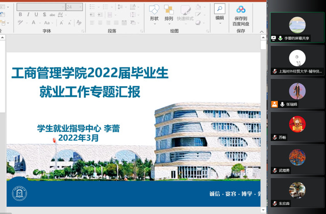 为进一步加强学院的疫情防控工作,确保学生的生命健康安全,同时稳步推进毕业生就业的各项工作安排,激发学生的就业热情,使“三全育人”的理念真正深入人心,为毕业生顺利就业保驾护航,3月24日,工商管理学院线上举办2022届毕业生就业工作推进会,以“凝心聚力、共克时艰”的理念,做到全员参与、推进学生就业,解决疫情常态化下的毕业生就业问题。工商管理学院领导班子、系主任、教工支部书记、全体班主任、全体辅导员参加本次会议,特邀校就业指导中心李蕾老师出席,会议由工商管理学院党委副书记张瑞娟主持。
