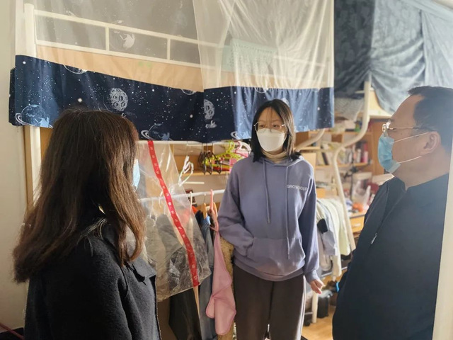 走访过程中,学院老师详细了解了疫情防控期间学生们的思想动态,并重点就疫情下的毕业、就业等情况与同学们进行了细致的交谈,与同学们一起研讨就业形势,帮助学生解决升学与就业上遇到的问题,同学们也积极主动地向老师反馈了学习生活近况。学院老师表示,目前正处于疫情防控的关键时期,宿舍成为了学生日常生活和学习的重要场所,学院高度重视守护学生的健康安全、解决学生的需求问题,同时叮嘱同学们要切实做好防护工作,珍惜时光为未来的升学就业打下坚实的基础。最后,学院老师鼓励同学们要保持良好乐观的心态,合理安排好学习时间,以昂扬的士气拥抱美好的未来。