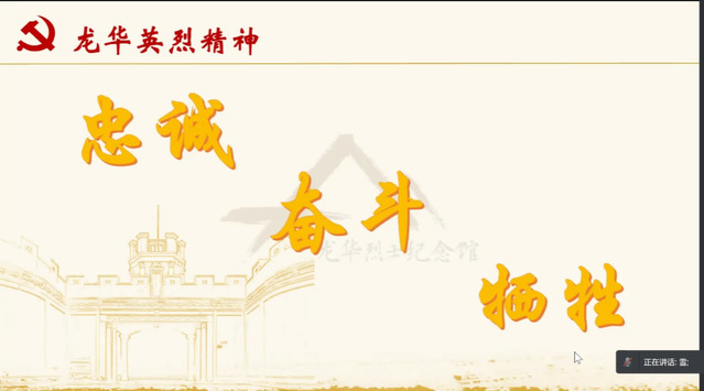 ●恰逢中国的传统节日清明节,在疫情吃紧的情况下如常了参加“悦读红色经典,传承伟大精神”主题党课。丛主任从忠诚、奋斗、牺牲三个角度进行了生动的解析,让我作为一名教师党员对于英烈可歌可泣的故事有了更清晰的认识。更加坚定了尤其是在打疫情狙击战的当下,依然要坚信中国共产党将会带领中国人民取得最终胜利的决心。中国,加油!