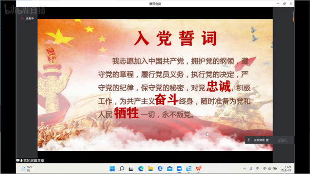 “我志愿加入中国共产党”。丛雪娇老师以一首《我宣誓》结束了本次讲座。坚守信仰的忠诚精神,一心为民的奋斗精神,不为生死的牺牲精神,是每一个中共党员应有的精神,也是新时代的我们应有的精神。