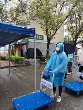 支部副书记李珍响应学院紧急号召,为83号楼隔离学生分拣物资,多次参加核酸检测志愿者,完成过控场、入场引导、分流、协助医生等工作,除此之外,还积极参与分餐送餐、超市引导、物资分拣等志愿工作约二十次。无论是天阴阴下着小雨,还是艳阳高照,她都丝毫不减为学生服务的热情,而且非常自信地说,在协助防疫地过程中收获了成就感和快乐,并做到了提升和完善自己,相信与学校、老师、同学同在,我们一定能打赢这场疫情阻击战