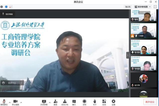 副院长王朝晖向与会人员介绍学院此次方案修订具有以下特点:学院领导重视,教师积极参与,结合校外专家与企业高管意见充分研究与沟通交流;对照工商管理教学质量国家标准,强化面向数智化、国际化、特色化;坚持立德树人,注重商科人才课程思政建设工作。