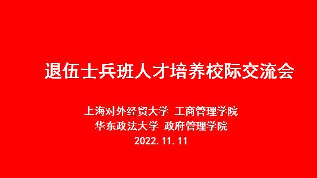 2022年11月11日,工商管理学院与华东政法大学武装部、政府管理学院联合召开了退伍士兵班建设交流会。华东政法大学政府管理学院党委副书记贾萍、教研室主任杨帆,武装部办公室主任沈佳,必赢626net入口首页工商管理学院党委书记武增勇、副书记张瑞娟(挂职),副院长王朝晖、左鹏,企管系全体老师出席。交流会由企管系主任杨军敏主持。
