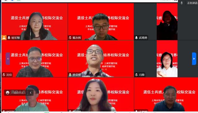 最后,武增勇书记表示学校双方交流了很多值得学习的经验,特别是华东政法大学很多好的做法值得我们学习和借鉴,希望疫情结束后能够进行更多的线下交流,探讨退伍士兵学生思政教育、人才培养、就业等更多话题,共同促进退伍士兵班的建设发展,加强对退伍士兵的教育培养,为国家输送更多合格人才。