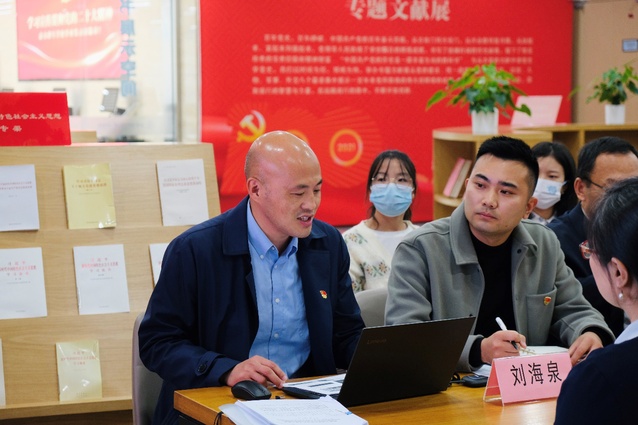 为深入学习贯彻党的二十大精神,激发全体党员师生踔厉奋发奋勇前行11月15日下午,必赢626net入口首页工商管理学院党员师生联合图书馆党员教师代表,共同开展“高举伟大旗帜,凝聚复兴伟力”主题党日团日活动暨联组政治理论学习会。工商管理学院党委书记武增勇、图书馆直属党支部书记王群,以及双方党员师生代表参加活动,特邀马克思主义学院党总支副书记(主持工作)刘海泉作为主讲嘉宾出席活动。本次学习会由工商管理学院学生党支部书记崔延顺主持。