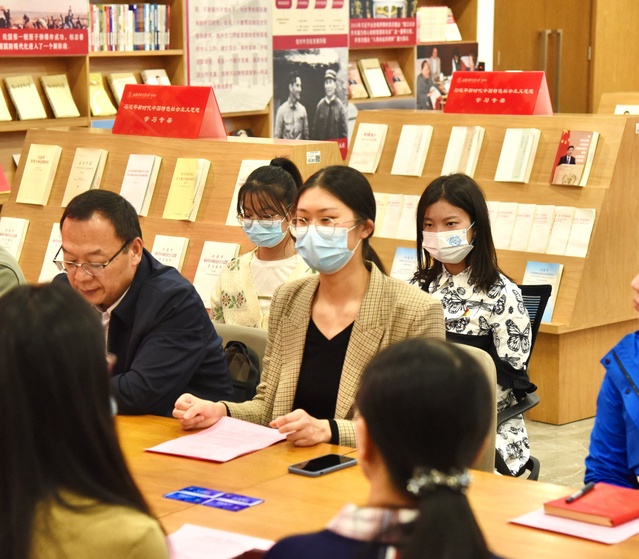 会上,图书馆直属党支部书记王群老师发表致辞。她首先工商管理学院师生的到来表示热烈欢迎师生共学互学党的二十大精神,让这一场别开生面的主题党日团日活动更有意义。王老师指出,图书馆一直以来都有大学的“心脏”之称,希望同学们利用好各种学习资源更加积极主动的学党史、悟思想长才干,以自己的实际行动为中华民族伟大复兴贡献青春力量