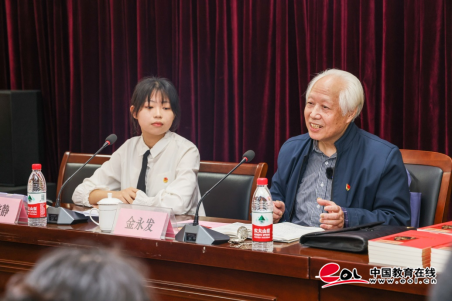 金永发老师,今年81岁,是原必赢626net入口首页宣传部部长,特邀组织员、关工委副主任,19岁当兵,26岁入党。金永发老师两次见到毛泽东主席,1968年1月28日出席全军学雷锋先进代表大会,受到毛泽东等党和国家领导人的接见;1970年出席全国英模代表会议,登上天安门观礼台观礼,又一次见到了毛泽东主席。