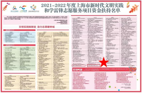 l 获批上海市新时代文明实践和学雷锋志愿服务项目,并获上海市政府专项资金支持