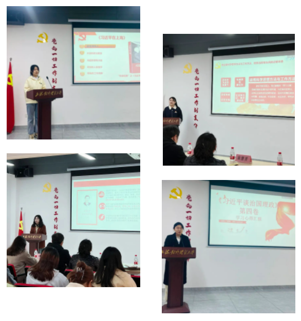 随后,工商管理学院入党积极分子胡高娥、孟优分别以《弘扬伟大建党精神,争做新时代追梦人》为主题,结合《习近平在上海》、《当好改革开放的排头兵——习近平上海足迹》进行红色书籍读书感悟分享。马克思主义学院入党积极分子孙敏慧、吴妙琦分别就《以青春之名,担时代之责》、《感悟中国之理的思想精髓》进行读书分享交流。未来属于青年,希望寄予青年。新时代青年责任在肩、使命崇高,应当在红色经典中汲取精神动力和智力支撑,勇于成为建设社会主义现代化国家的排头兵。