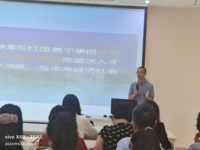 副院长蔡会明对本科评估工作进行了汇报和部署,并且进一步强调了期末考试相关工作和监考注意事项。