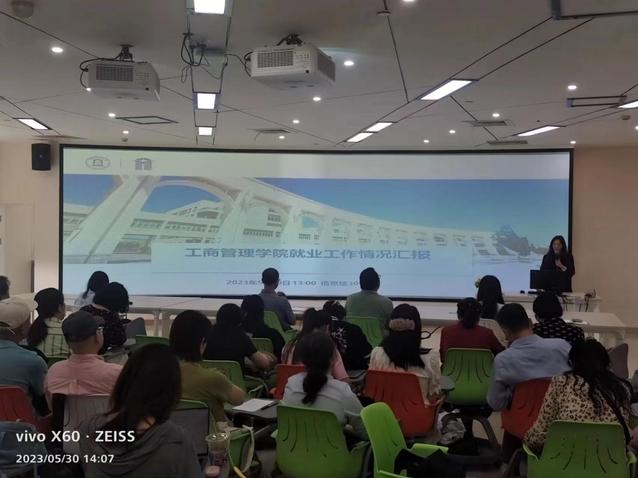 党委副书记张瑞娟从就业工作情况、就业中存在的问题和困难、已采取的措施、下一步工作思路等方面进行了详细介绍。通过对学院的本科生及研究生就业情况进行了数据总结,并且对工作中存在的问题与困难进行了分析,也对本年度的就业工作进行了进一步的动员和部署。