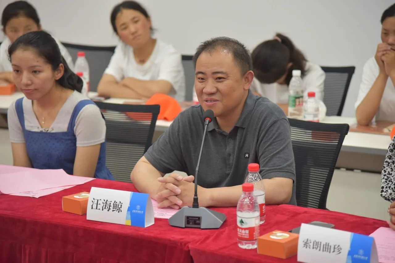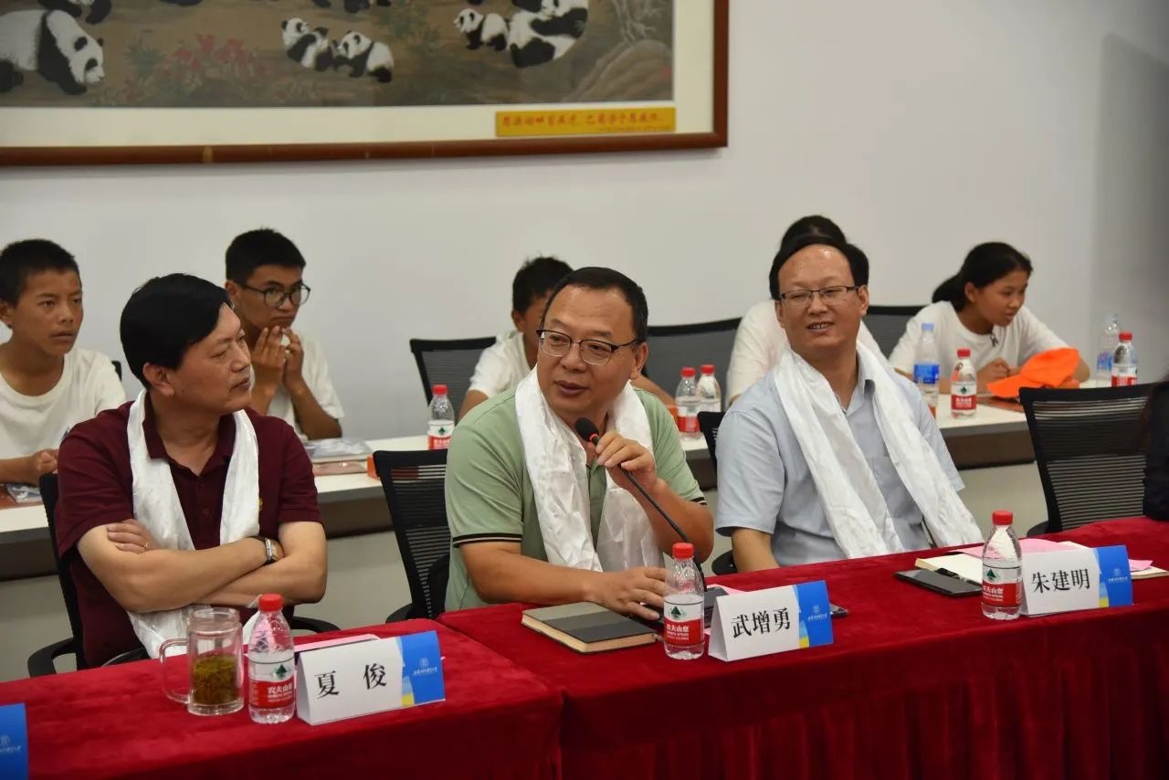 工商管理学院党委书记武增勇对西藏日喀则市定日县师生的到来表示诚挚的欢迎!武老师讲到,“情暖西藏·点亮梦想”实践活动跨越了5000公里的时空,从东海之滨走进了雪域高原,切实为广大青年学生提供了援藏志愿服务平台,有效促进了两地青少年在思想与行动上同频共振,共同学习红色精神,汲取奋进力量。希望两地携手同行,全面推进大中小思政一体化建设。