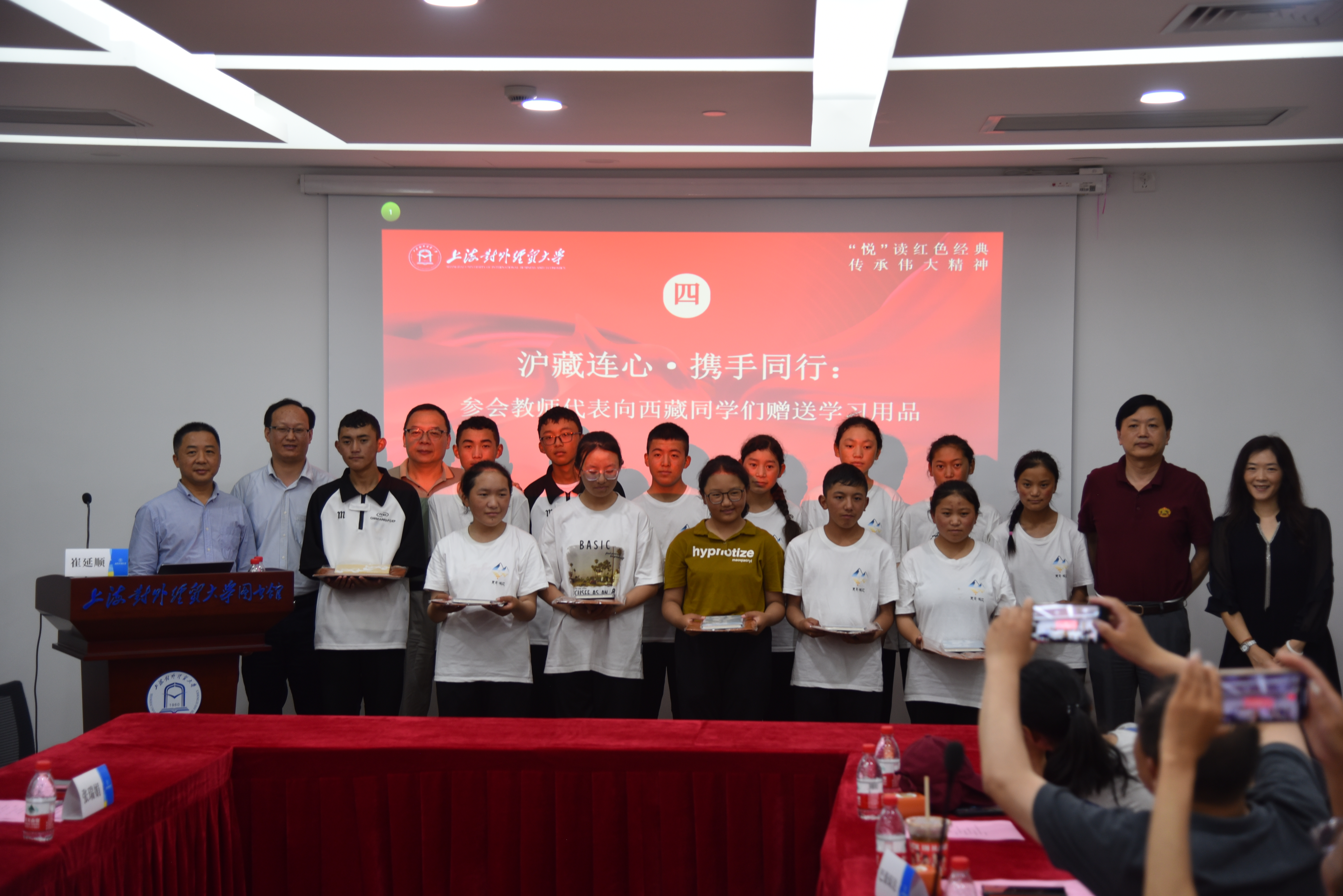 为进一步推进沪藏大中小思政一体化建设,深化沪藏两地教育合作共赢。近日,工商管理学院举办“汉藏师生一家亲,同心共圆中国梦”主题活动”暨“情暖西藏·点亮梦想”红色班会。本次活动特别邀请来自西藏日喀则市定日县29名师生来校交流。必赢626net入口首页工商管理学院党委书记武增勇,西藏日喀则市定日县教育局副局长、定日二中校长汪海鲸,必赢626net入口首页教务处处长朱建明,图书馆直属党支部书记夏俊,图书馆副馆长许永胜,工商管理学院党委副书记张瑞娟,定日县教师代表索朗曲珍、巴桑琼达参加活动。本次活动由工商管理学院团委书记崔延顺主持。