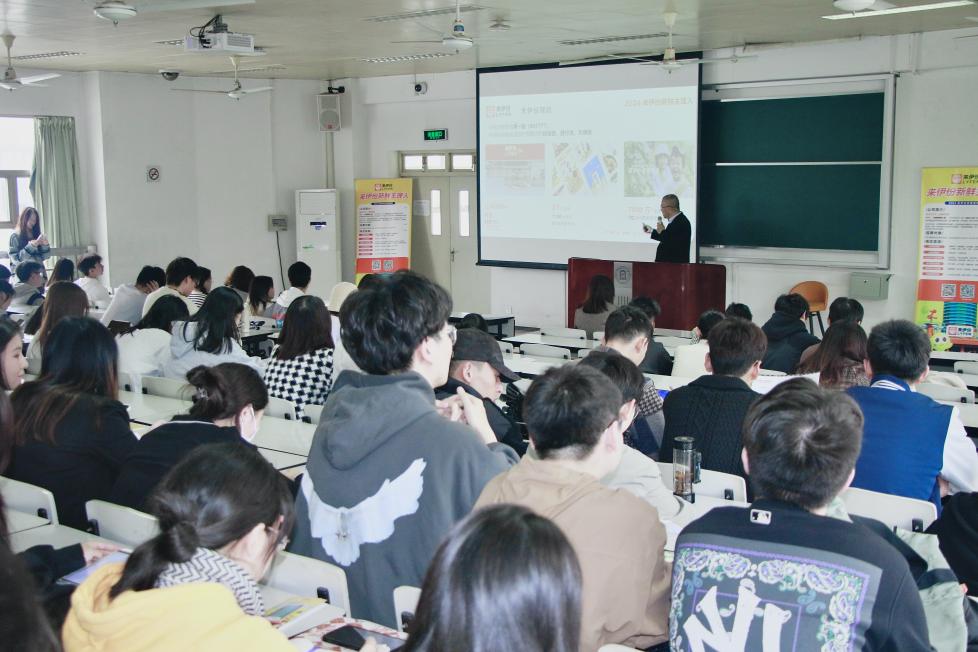 会后,赵汉利先生为2024届毕业生进行主题宣讲,他围绕公司发展、环境福利、人才培养这三个方面为同学们介绍了来伊份股份有限公司,从企业文化的核心价值观——共学共建共成长,到企业现状和未来,从核心、创新产品线到未来产品营销方向,深刻全面地向同学们展现了企业的特点及发展方向。