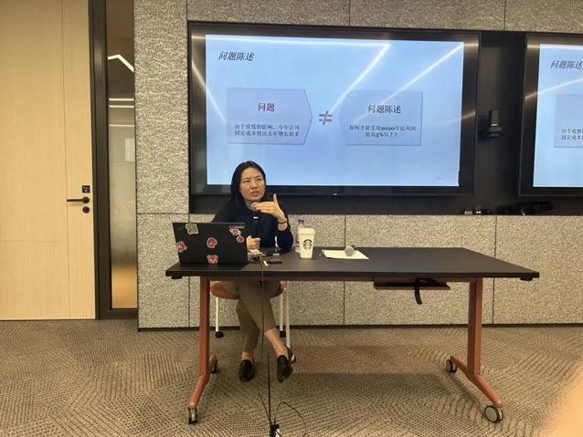 案例分析环节,Megan老师从定义问题、确定关键议题、进行分析、得出简介及结论、产生影响力五个逻辑化解决问题的步骤,引导同学们就“如何让ABC公司实现2023年中国业务收入增长50%。”进行策划并讨论。在短暂并紧张的十五分钟里,各小组激烈讨论,进行头脑风暴,创作出了各自的策划方案,并在展示环节中清晰的说出了自己的思考与想法。活动的整个环节都引发了同学们的细致思考,相信每个人都收获颇丰,在活动中有所感悟。