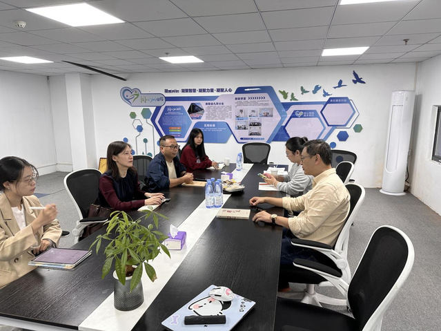 调研团队在园区负责人陶伟总经理的介绍下先后参观了园区的文创作品展厅、路演厅和园区特色企业,并在参观后双方进行了座谈交流。在交流过程中,陶总向调研团队讲述了园区的发展历程、现在的企业入驻情况以及举办的科创文创类活动等,并对文创基地的后续发展和面临的阻碍等问题双方进行了探讨。