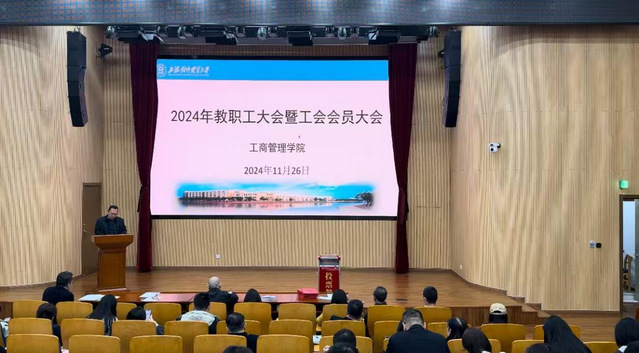 202411月26日,工商管理学院在松江校区图书馆思源报告厅召开2024年度中层干部述职考核会暨工会会员大会。组织部郑斌同志、工商管理学院全体教职工参加会议。会议由工商管理学院党委书记武增勇主持。