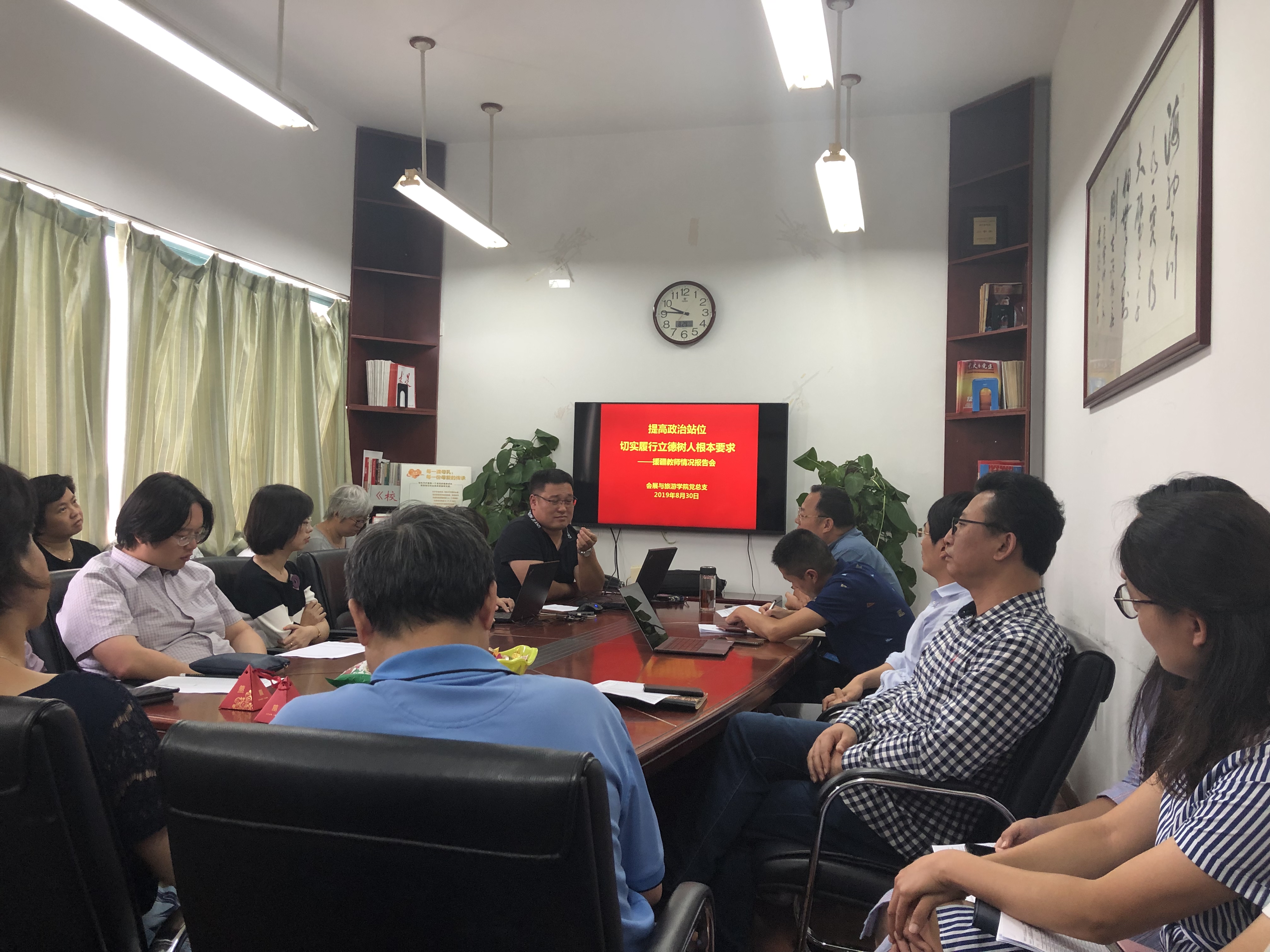 会上,大家纷纷就如何不忘教书育人这一初心,如何站好三尺讲台,为国家培养更多的优秀人才进行了发言交流。老师们表示,学校目前正处在深化教育综合改革、促进教育教学内涵发展、建立现代化大学管理体制的关键时刻,在这一背景下,学院也面临着如何深化改革提升学科内涵发展、提升人才培养质量的问题,每一个老师都要为学院、学校的发展尽一份力,只有学院、学校发展好了,教师们的发展才能好,才能有更好更大的发展平台。学院党总支在本学期将整合资源,打造平台,开展“三全育人”工作,全面推动学院人才培养上一新台阶。