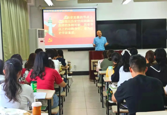 首先,刘海泉老师给同学们上了一堂生动的党史学习教育课。刘海泉老师幽默风趣,循序渐进地引导同学们认识一百年来中国共产党的建立与发展过程。党史学习教育课使同学们了解党成长过程中所克服的各种艰难险阻,让同学们深刻认识党不屈不饶与艰苦奋斗的强大精神。课程现场氛围活跃,刘海泉老师积极与学生互动,正确引导学生的入党动机,传扬党的初心与使命。以史为鉴对学生进行入党启蒙,不仅让学生学习到党的历史,还能让学生真正地认识中国共产党是一个怎样的党,这有利于端正学生的入党动机。