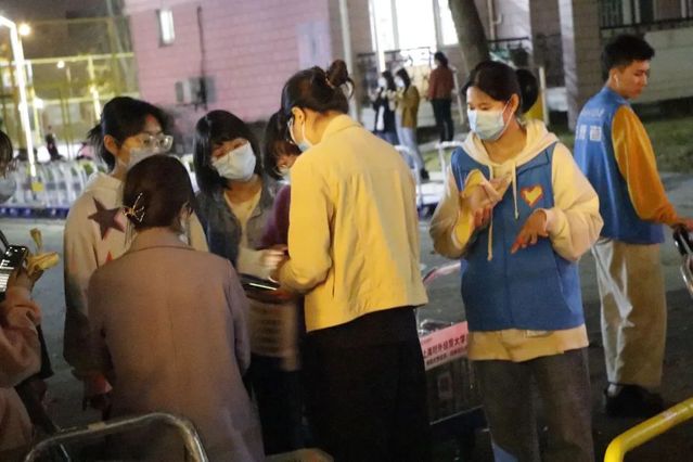 疫情袭来,学院党员闻令而动、听令而行,一经号召即以最快的速度成立了一支招之即来、来之能战、战之能胜的党员志愿服务队。“我是党员我带头”,根据安排,作为学院目前唯一驻扎在学生社区的余芳芳同志牢记使命,勇挑重责,带领着由10名学生党员组成的社区党员小分队,在完成各项繁重防疫日常工作的同时,牢牢守护着学院托付的284名学生。服务队其他党员积极参与到核酸检测、运送生活物资等工作中,累计参与服务达到130余人次。