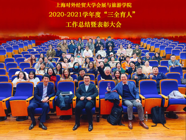 2021年12月24日,在深入学习贯彻党的十九届六中全会精神,踏上第二个百年奋斗目标新征程之际,会展与旅游学院在思源报告厅举行2020-2021年度“三全育人”工作总结暨表彰大会。学院党总支书记谈华、院长王春雷、党总支副书记张丽、副院长田纪鹏、校档案馆副馆长丁烨、会展系主任黄辉、会展系教工党支部书记蔡萌、旅游系教工党支部书记王雪辉、其他专业教师代表、辅导员、学生代表参与大会。会议由学院党总支副书记张丽主持。