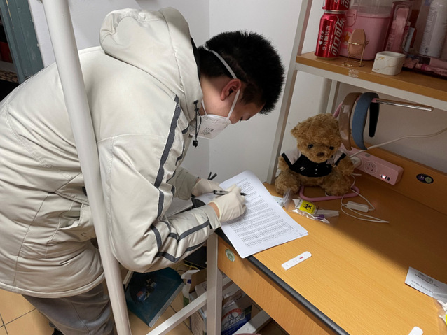 徐军与陈蓝参与了楼宇的值班志愿工作,提醒同学们出楼和回楼及时登记。志愿过程中,她们不仅体会到学校防疫工作安排的事无巨细,也感受到志愿者们的积极心态和坚定决心。同学们认真履行学校防疫政策要求,完成出入楼登记,过程井然有序。同学们的自觉主动以及积极配合,也让疫情防控工作的展开更加有效、有序、便捷。