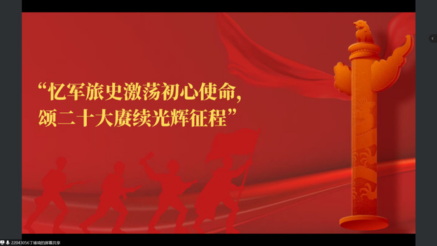 正值我国召开二十大之际,为贯彻学习二十大精神,加强社会主义核心价值观培养,会展与传播学院于2022年10月28日开展了“忆军旅史激荡初心使命,颂二十大赓续光辉征程”第一次主题团课。