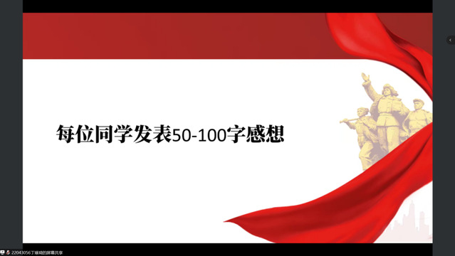 在红色精神耳濡目染的氛围下,他们也提出了对于二十大的感悟,他们以不同的视角,侧重于一个军人的身份,为我们的思索提供了新的方面,也对同学们提出了勉励。随后主持人也进行了对于二十大的总结感悟,阐述了二十大的核心意义。在伴随着同学们陆续地表达感悟后,本次主题团课活动圆满结束。