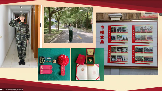 雍晓静展示了她们训练部队非凡的气概,以巾帼不让须眉的态度做好每一项工作。在展示时她更注重谈论部队生活中的自我坚持,值得我们学习。