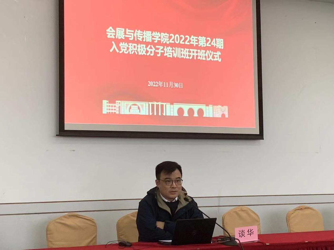 11月30日下午,会展与传播学院党校第24期入党积极分子培训班开班仪式在信息楼530举行,学院党总支书记谈华、团委书记余芳芳、辅导员那孜拉参加了开班仪式。开班仪式由学院专职组织员梁宇主持。