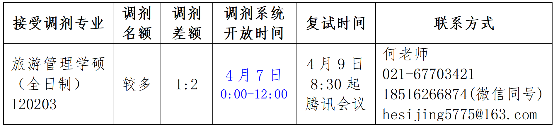 根据调剂系统第一批填报情况,会展与传播学院旅游管理学硕(120203)继续接收调剂,欢迎咨询。