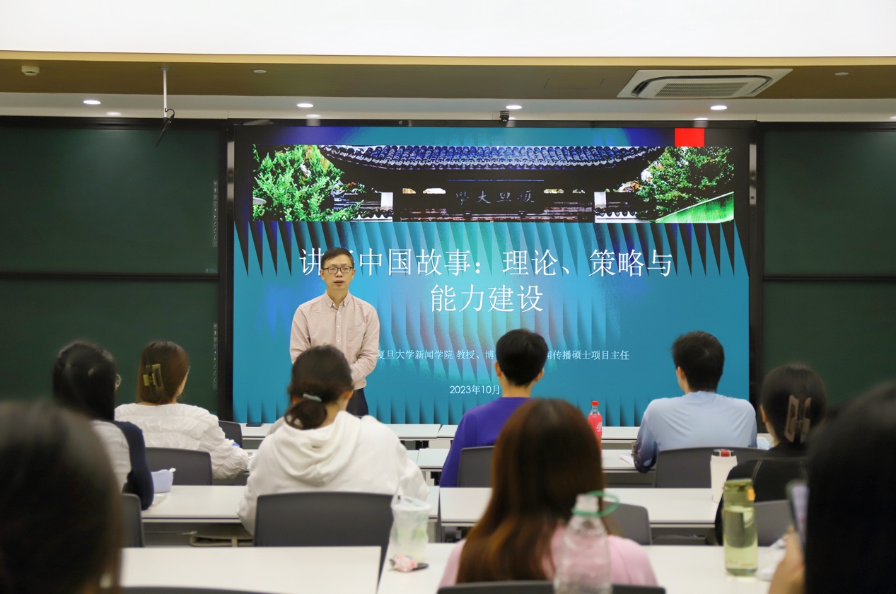 为提升新闻与传播系研究生和本科生参与国际传播的能力建设,10月17日,复旦大学新闻学院传播系教师、博士生导师邓建国教授莅临我院,为新闻与传播系学生开展了一场既富含人类交往的哲学思考,又生动联系对外报道实践的课程讲座。
