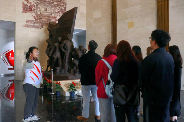 随后一行人在青年志愿者的带领下参观了革命历史纪念馆,聆听烈士们的英勇事迹,重温那些波澜壮阔的革命故事。走进纪念馆,仿佛穿越时空,回到了那段艰苦卓绝的岁月,来自上海高校的青年志愿者们用生动的语言和丰富的图片资料,向大家讲述着烈士们为民族解放、国家独立而英勇斗争的壮丽篇章。党员同志在心灵深处接受了一次深刻的爱国主义教育的熏陶与洗礼,深刻认识到作为年轻一代的使命感和责任感。