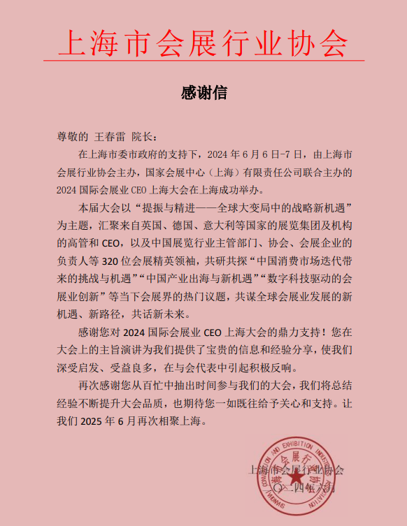 院长王春雷教授应邀在2024国际会展业CEO上海大会上发表主题演讲