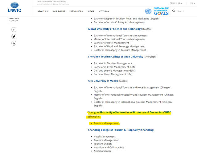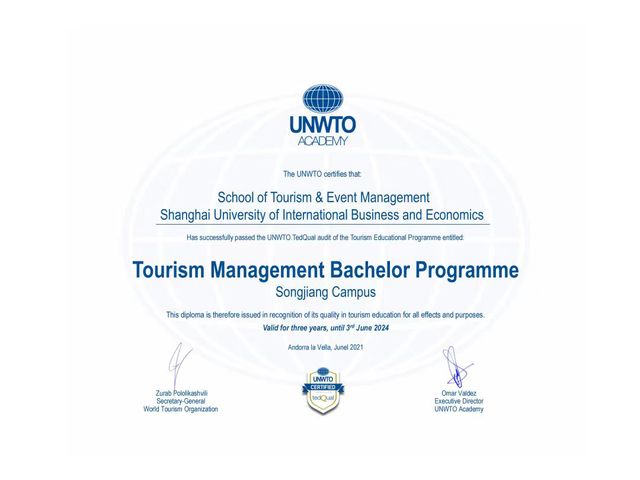 会旅快讯 | 我院旅游管理专业正式接到UNWTO. TedQual认证证书