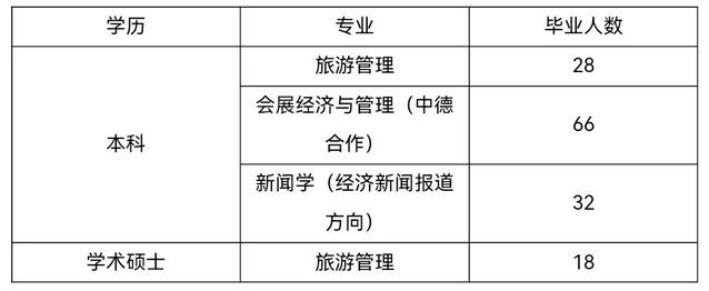 会展与传播学院现设会展经济与管理(中德合作)、旅游管理、新闻学(经济新闻报道方向)3个本科专业,旅游管理学术硕士、旅游管理硕士专业学位项目(MTA)、新闻与传播硕士专业学位项目(MJC)3个硕士点。过去十几年,学院以高素质专业人才培养和高质量学术成果产出为中心,在会展、文旅和新闻传播高等教育、学术研究和社会服务等方面形成了鲜明特色,在全国具有一定示范引领作用。