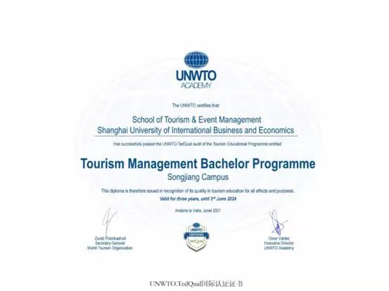 2020年 通过联合国世界旅游组织旅游教育质量认证(UNWTO.TedQual)