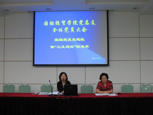 | 10月20日晚上6点,以“实践党员先进性,做三风建设表率”为主题的国际经贸学院党总支全体党员教师大会在信息楼503会议室召开。国际经贸学院全体党员教职工参加了大会。聂清院长、党总支书记陈光建老师分别作了动员宣讲。 |